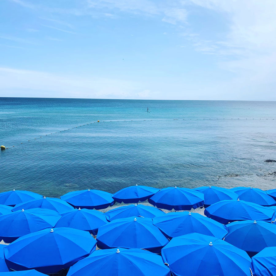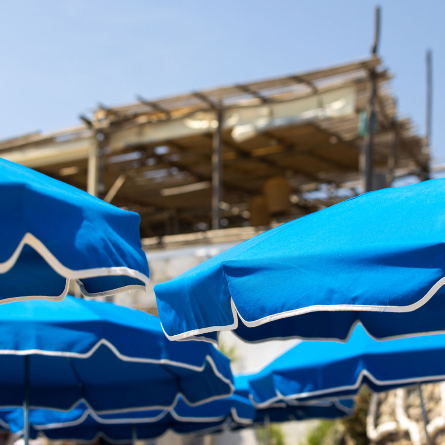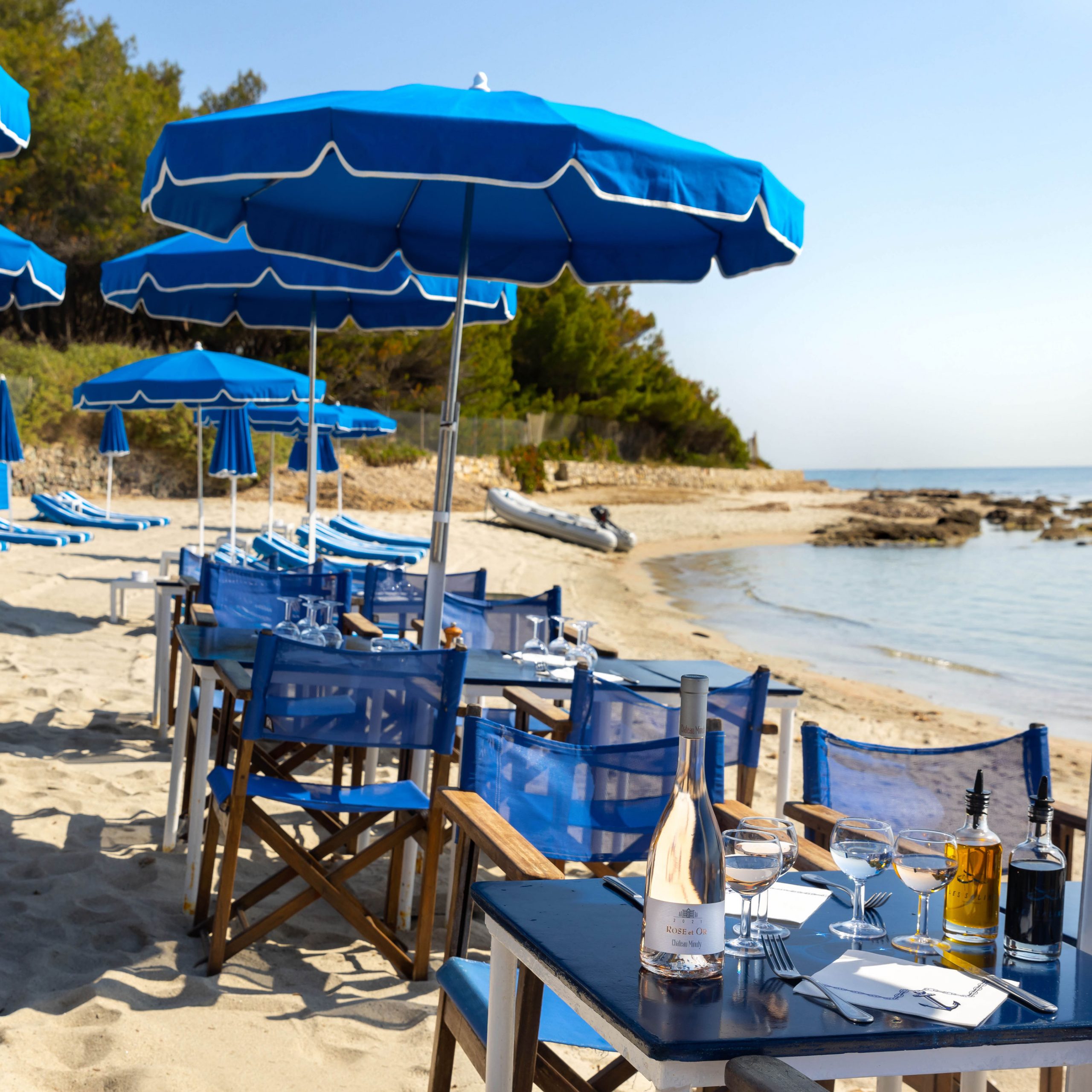 Profitez du soleil de la Méditerranée dans un petit coin de paradis sous nos parasols bleus.